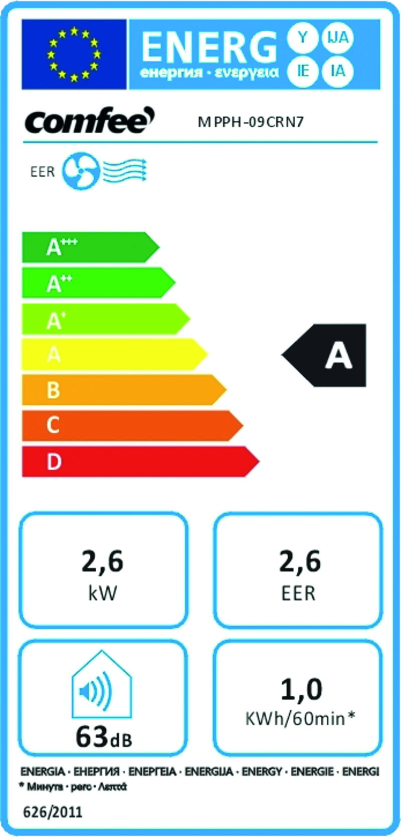 Welche Energieeffizienzklasse hat die comfee Mobile Klimaanlage MPPH-09CRN7?