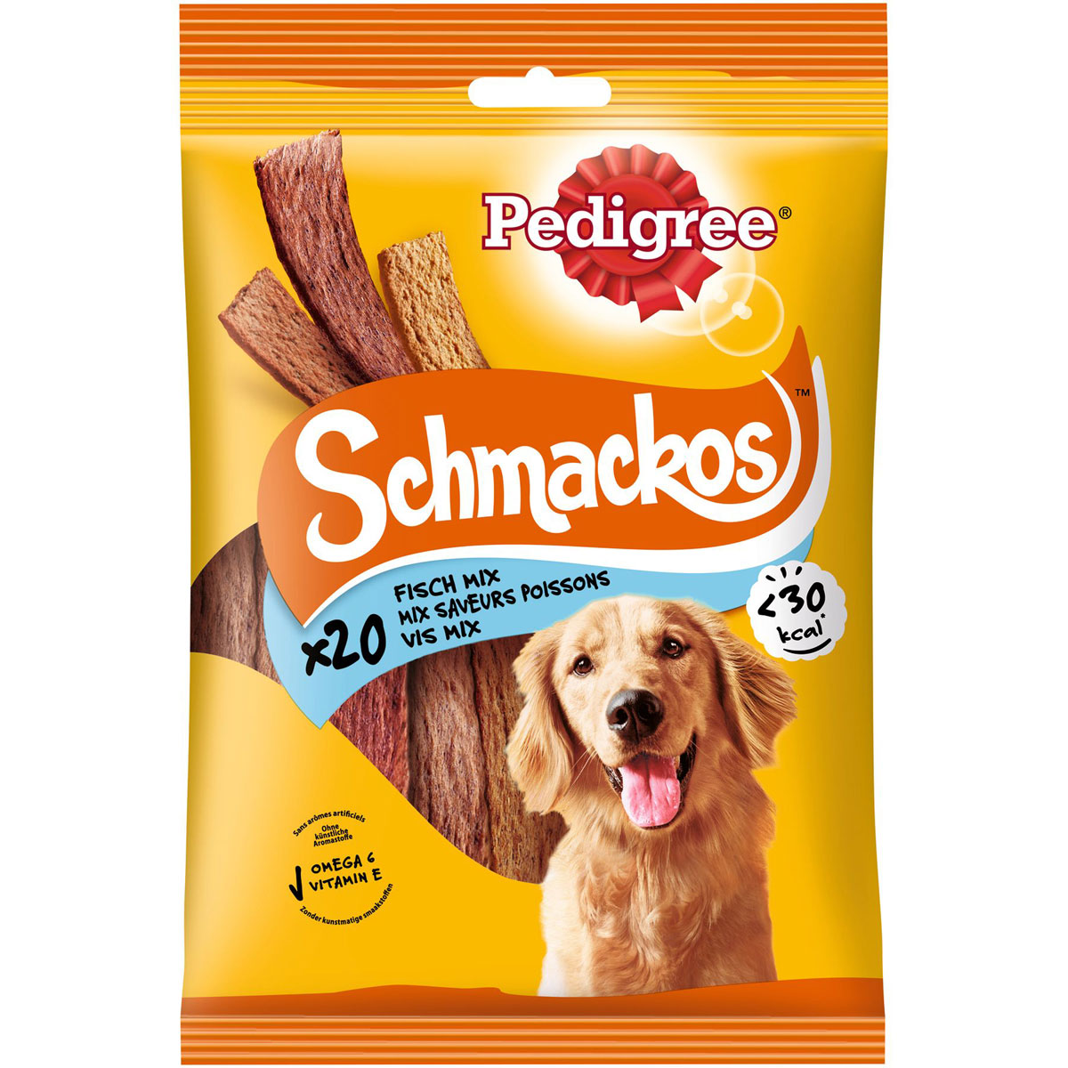 Pedigree® Schmackos - köstlich und mit dem Biss, den Hunde lieben. So portioniert, dass Sie Ihren Hund immer dann, wenn Sie möchten, so sehr verwöhnen können, wie er es gerade verdient. Ein leckerer Snack zum Belohnen und Verwöhnen. Diese Streifen sind für Hunde jeden Alters und jeder Rasse geeignet.