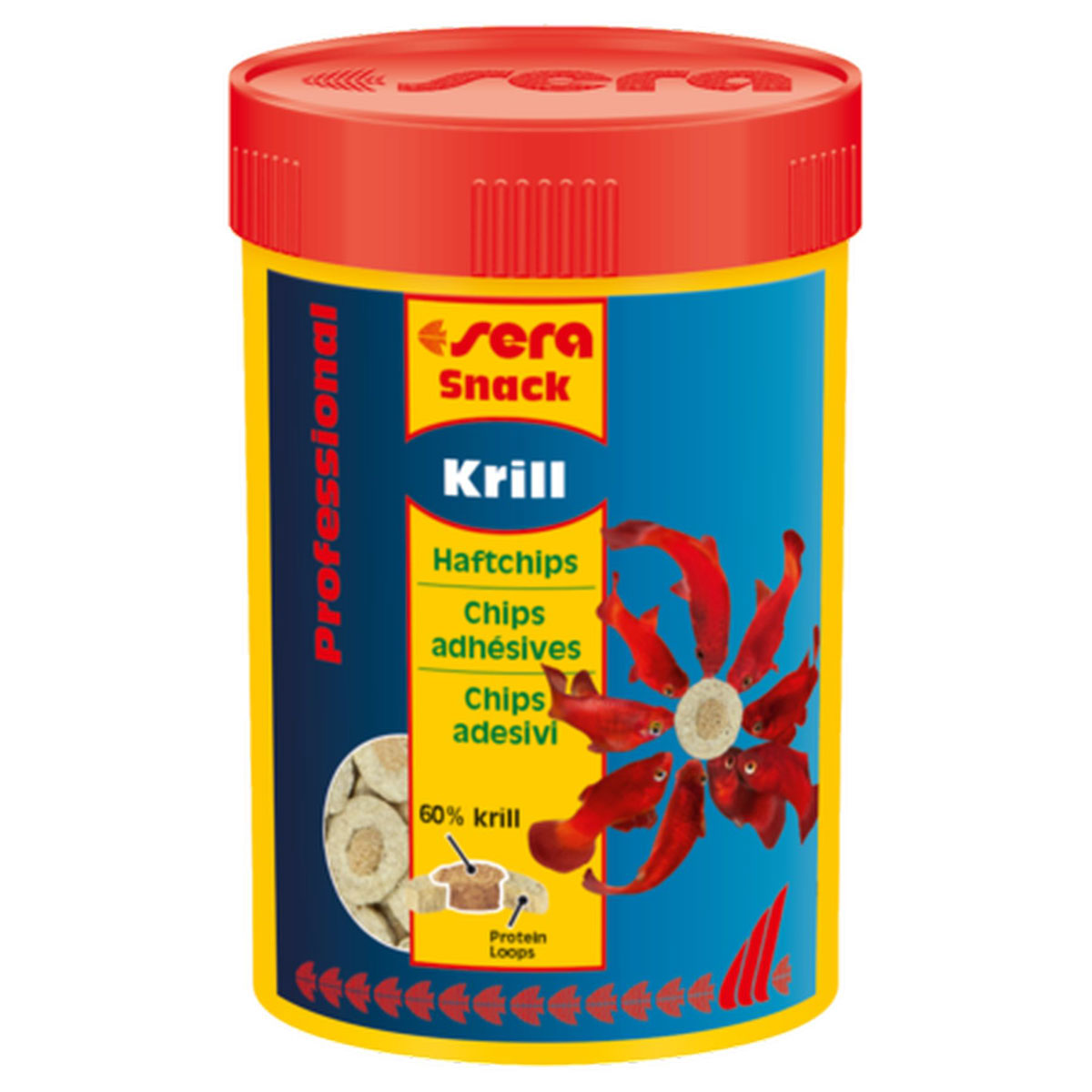 sera Krill Snack Professional, der Leckerbissen mit 60 % Krill im Kern, unterstützt besonders die optimale Farbausprägung der Fische. Das natürlich im Krill enthaltene wertvolle Astaxanthin und die Spurenelemente fördern zudem die Laichbereitschaft und Vitalität. Die schonend co-extrudierten Haftchips lassen sich • nach kurzer Einweichzeit • leicht an der Aquarienscheibe anheften. Die Fische zupfen sich diese Leckerbissen dann begeistert Stück für Stück ab und bieten so spannende Beobachtungsmöglichkeiten. Die schnell sinkenden Chips eignen sich allerdings auch hervorragend als gesunde Abwechslung für alle Bodenbewohner. Der leicht verdauliche Snack kommt ganz ohne Farb- und Konservierungsstoffe aus. Und der hohe Anteil von 60 % an Futterorganismen im Kern des zweifarbigen Futterplättchens macht die Chips besonders attraktiv und wertvoll.