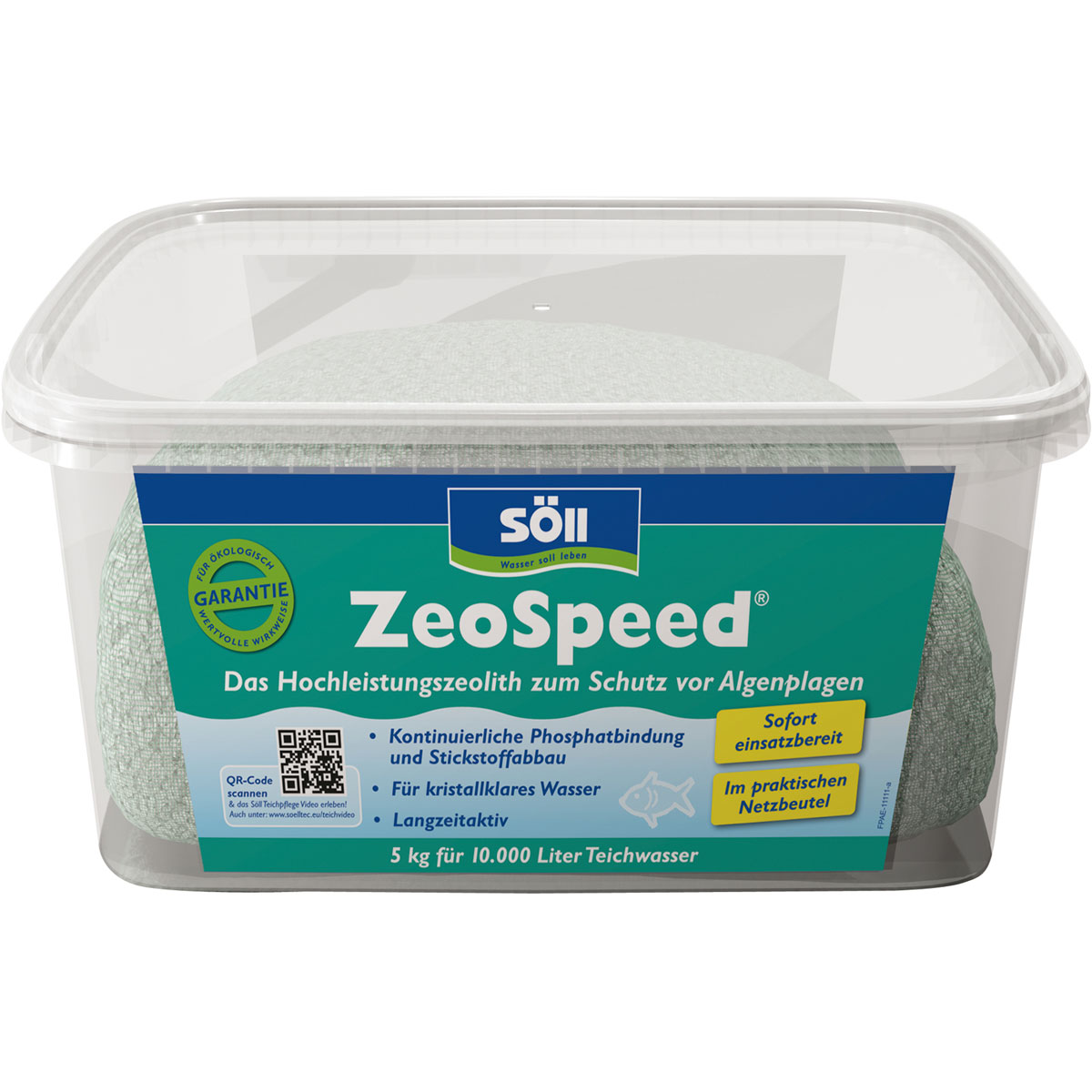 Mit Söll ZeoSpeed erhalten Sie ein sofort einsatzbereites Pflegemittel im praktischen Netzbeutel, das langfristig für klares Wasser in Ihrem Teich sorgt.