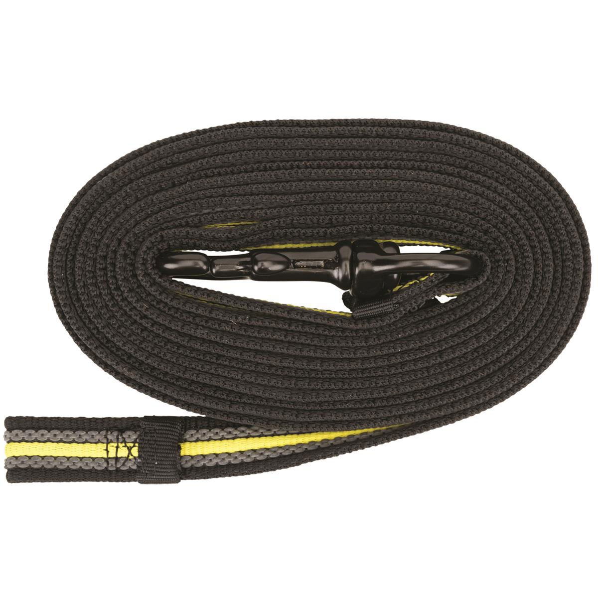 Gurtband mit eingewebter Gummierungbruchsicherer Bolzenhaken aus Messingbesonders belastbarrutschfest und griffigzur Hundeausbildung, z. B. zum Antrainieren von Kommandos auf Distanzfür die Fährtenarbeit oder Nachsuche (Jagd)für besonders viel BewegungsfreiheitArtikel 207317 mit Handschlaufe