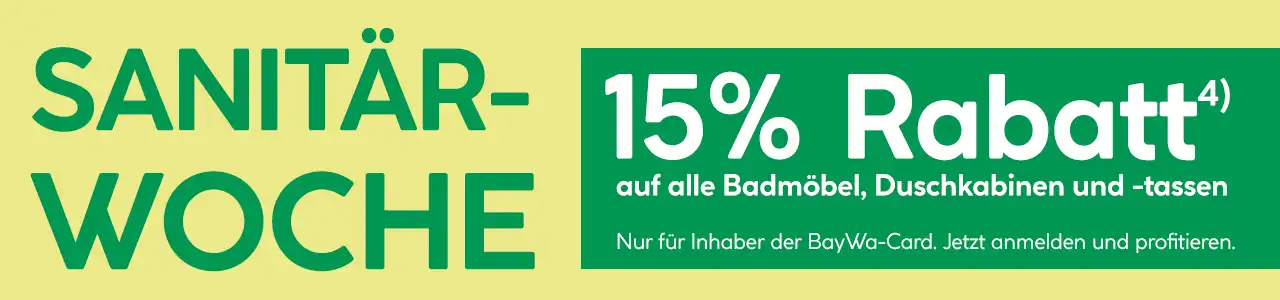 15 % Rabatt auf alle Badmöbel, Duschkabinen & -tassen